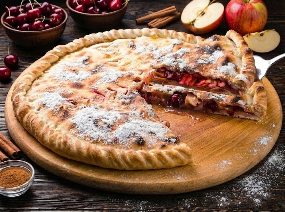 Пирог с вишней и яблоком