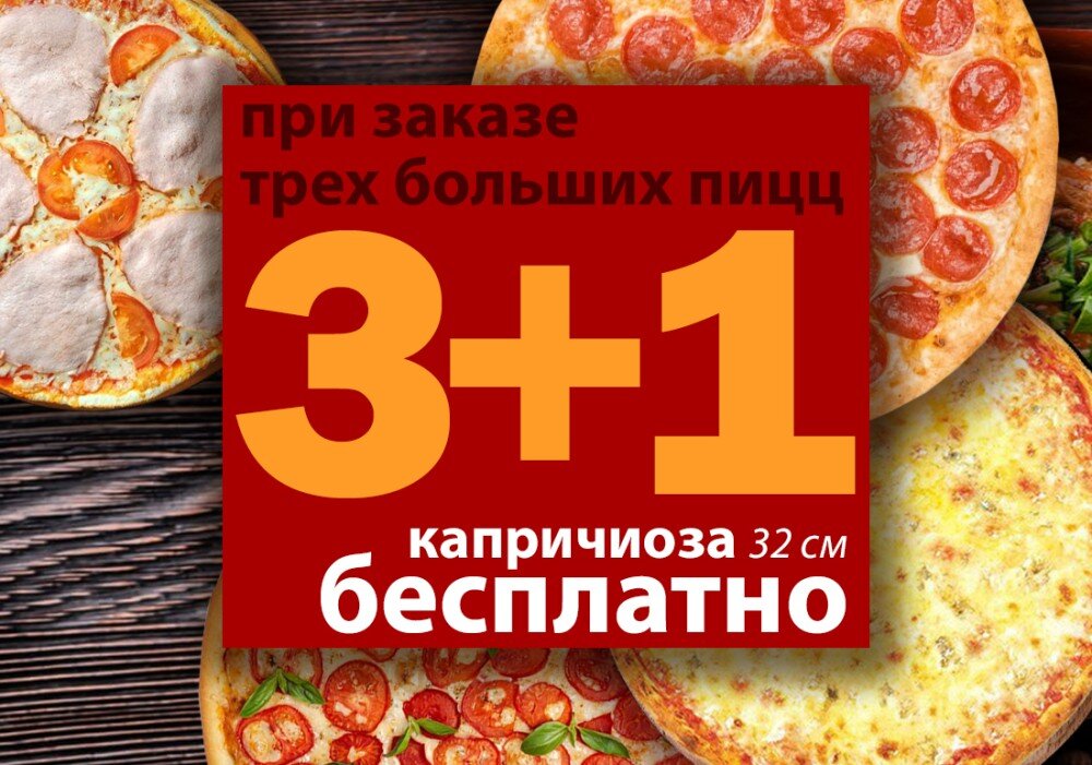 3 больших пиццы + 1 пицца 32 см в Подарок