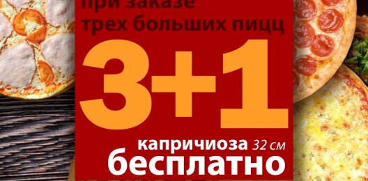 3 больших пиццы + 1 пицца 32 см в Подарок