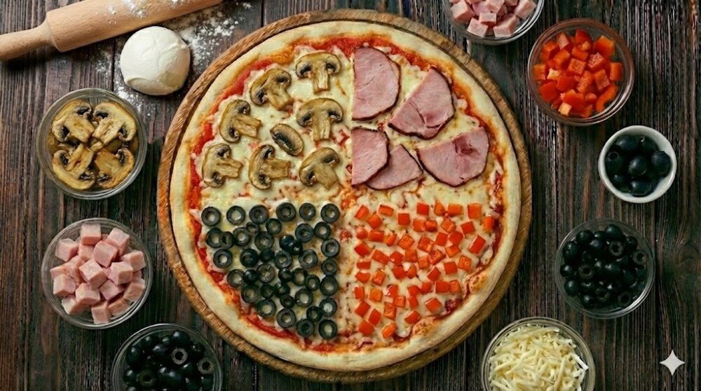 3 больших пиццы + 1 пицца 32 см в Подарок